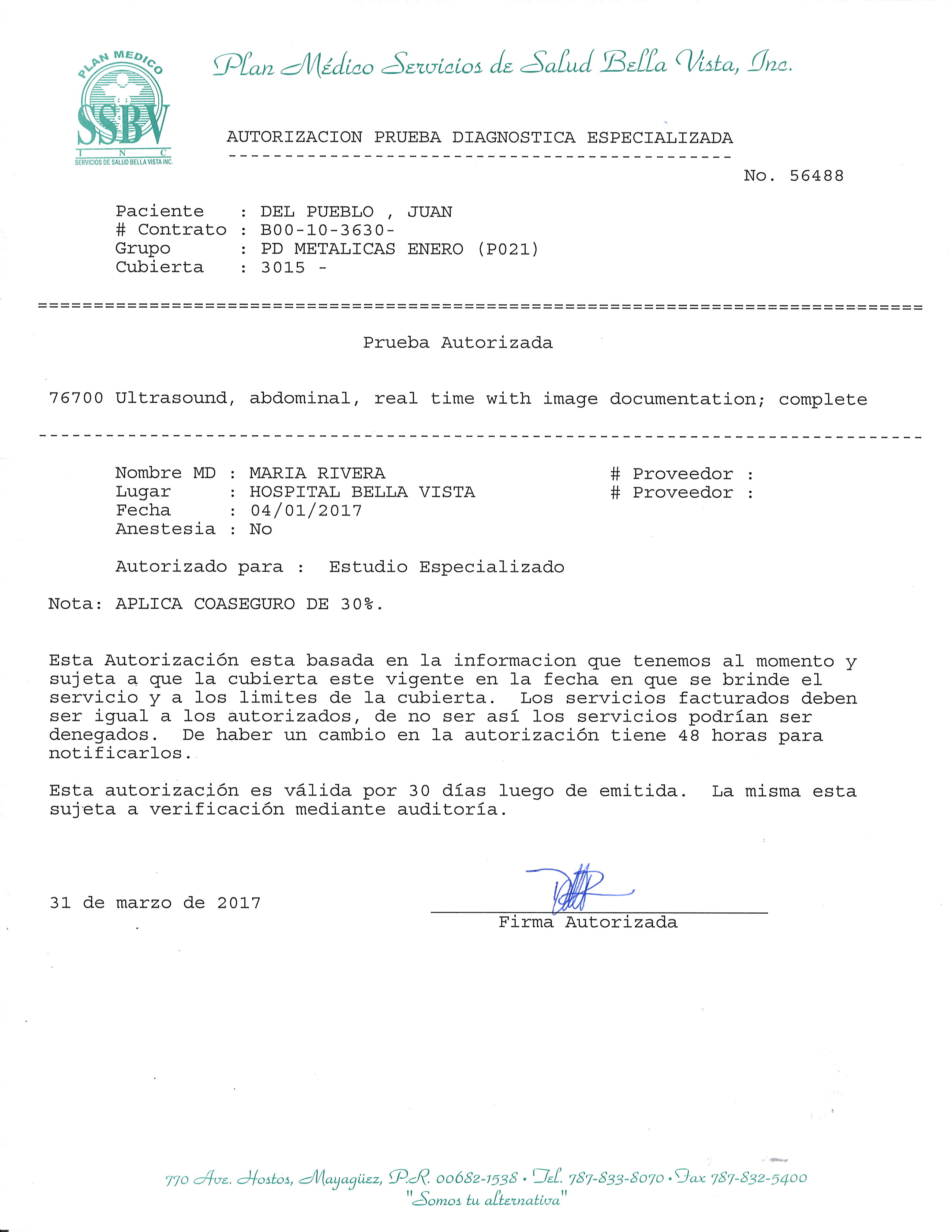 El Plan Médico Servicios de Salud Bella Vista Inc. ha establecido un proceso de pre-autorización para poder recibir ciertos servicios dentro de la cubierta del Plan Médico. Con este motivo deseamos orientarle sobre el proceso a seguir para obtener una autorización de servicio y cuales procedimientos requieren el permiso.